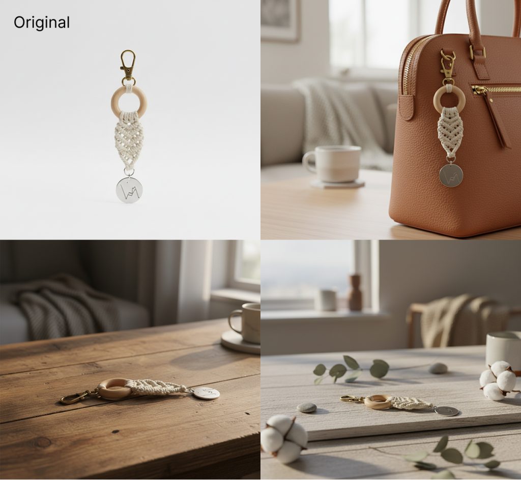 AI가 조명, 그림자, 원근감, 색감을 자동으로 조정해서 전문 스튜디오에서 촬영한 것처럼 자연스러워집니다. 약 30초~1분이면 전문가 수준의 제품 사진 2장이 완성돼요!