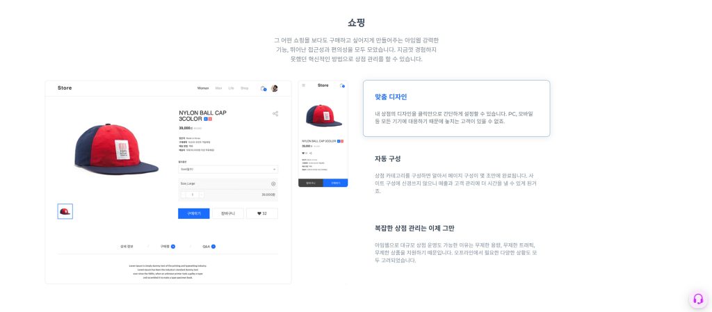 - 소규모 쇼핑몰이나 브랜드 페이지를 운영할 때