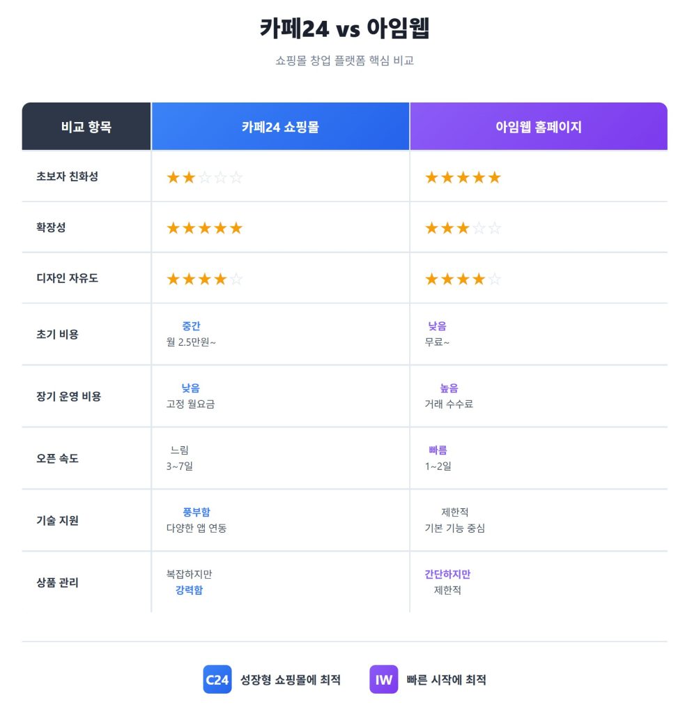 온라인 쇼핑몰 창업을 준비하면서 가장 먼저 마주하는 고민이 바로 “어떤 플랫폼을 선택할 것인가”입니다. 특히 cafe24와 아임웹은 국내에서 가장 많이 사용되는 쇼핑몰 제작 플랫폼이죠. 두 플랫폼 모두 장단점이 명확해서 선택이 쉽지 않습니다. 오늘은 카페24 쇼핑몰과 아임웹 홈페이지 제작의 차이점을 명확하게 비교하고, 각 플랫폼에서 제품 사진을 효율적으로 준비하는 방법까지 알려드릴게요.
