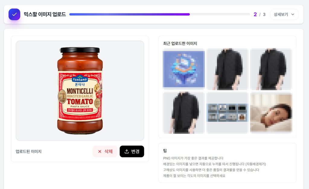 - AI 믹스로 다양한 배경의 제품 사진 10장 이상 제작