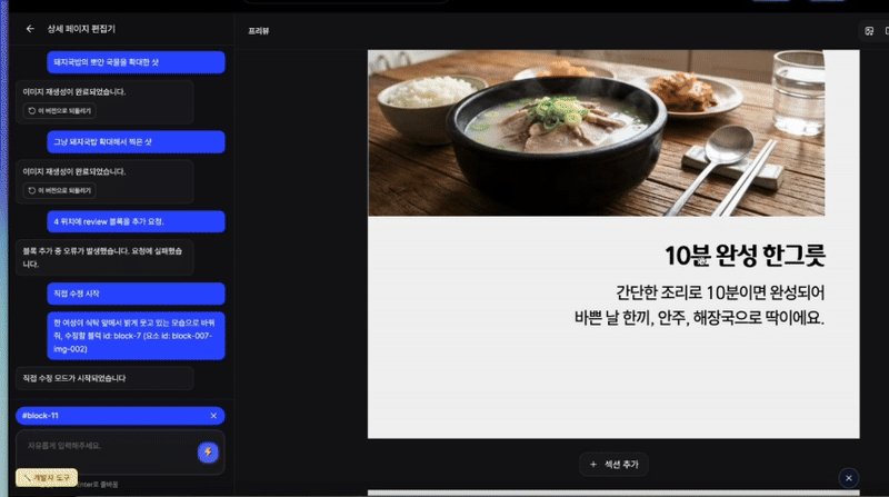 결과물이 마음에 들지 않으신가요? “모델을 외국인으로 바꿔줘”, “문구를 좀 더 감성적으로 바꿔줘”라고 채팅하듯 말만 하세요. 대화형 편집 기능을 통해 실시간으로 수정할 수 있습니다.